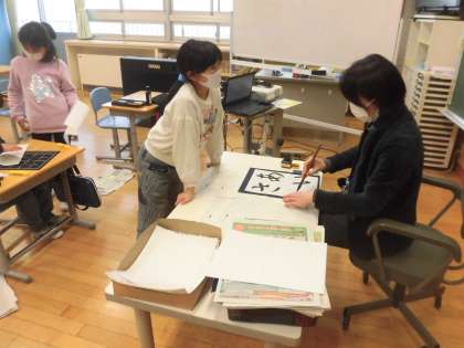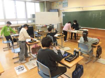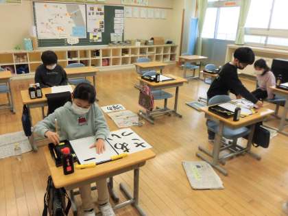 自分の今年の目標となる言葉を「書きぞめ」として習字で書きました。