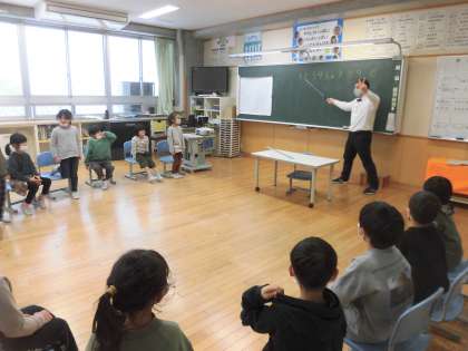 1・2年生は、ALTの先生と一緒に、楽しく英語の勉強をしていました。