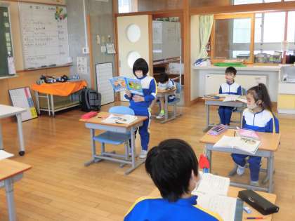 今日は、「たぬきはどうして糸車がじょうずになったのか」について話し合っていました。文章をよく読んで、「○○ページに、○○と書いてあるからです」と理由もつけて話をすることができます。