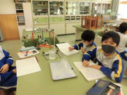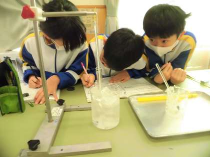 水は、何度になったら凍るのか、凍るまでどれくらい時間がかかるのか、予想を立ててから実験に取り組んでいました。