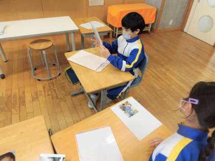 2年の生活科では、これまでの自分の成長を振り返っています。成長の様子が分かる写真を持ち寄って、見合っていました。幼い頃の話で盛り上がっていました。