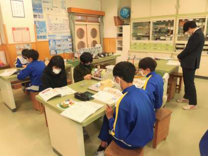 今日は、リトマス試験紙でそれぞれの水溶液の性質を調べていました。
