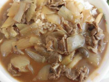 たっぷりの牛肉が使われていて食べ応えがあります。チーズポテトにもルーをつけても美味しいです。今日もおいしくいただきました!!