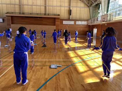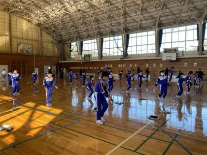 運動タイムは、体育館でのなわとび練習です。なわとび大会(個人の部)にむけて自己ベストを更新できるようにがんばっています。
