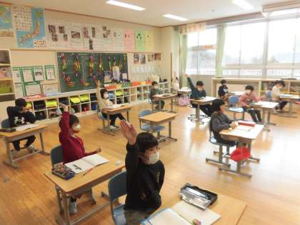友達の考えを聞き、自分の考えも進んで発表をしています。