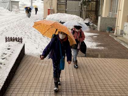 今朝はまた雪が降り始めました。この後、積もりそうです。