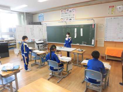 友達の発表を聞いて、話し方のよさや「もっとこうしたらいいよ」というアドバイスを伝え合っています。たくさん友達のよさを見つけていました。