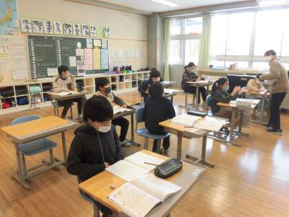 割り切れるまで計算する、わり算の筆算を学習しています。なかった小数点を書いて、小数点以下の計算をします。小数点を書き忘れることがあるので、要注意です。