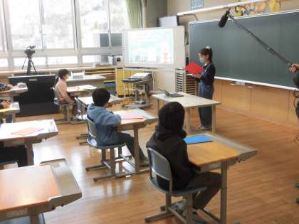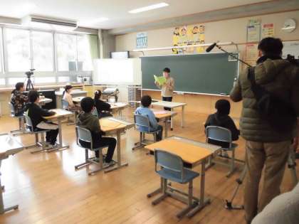 4年生は、総合で取り組んできた水環境について一人一人がまとめの発表をしました。「水みらいプロジェクト」の取材にテレビ局のカメラも来ているので緊張気味です。