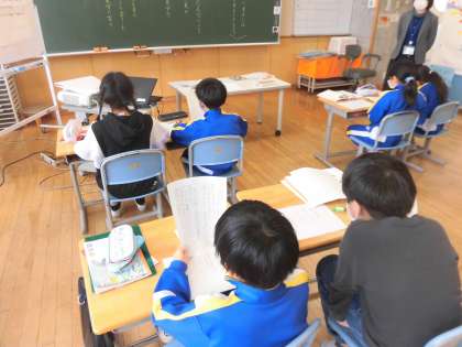 声の大きさに強弱をつけることや聞き手を見て話すことなどが意見としてありました。それを基に練習していました。