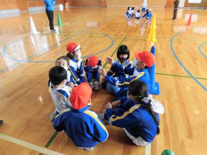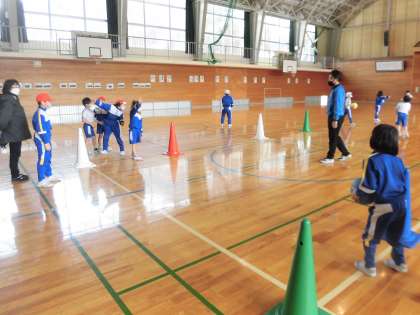 3月8日(火) 1・2年体育「ドッジボールキャッチゲーム」