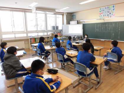 5年生は、教頭先生と国語の学習をしていました。