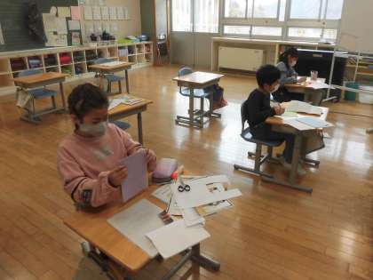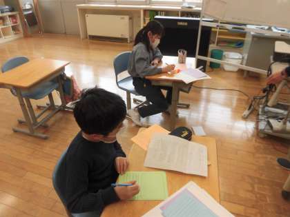 子供たちが自分の成長を記録するための冊子をつくっています。写真にあわせてお家の人に聞いてきたその時の様子を買い込んでいました。