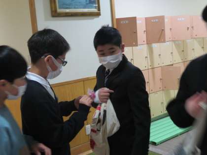 本日の主役、卒業生が登校してきました。