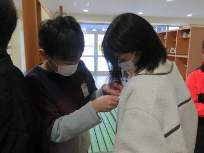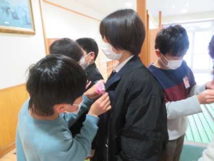 在校生を代表して5年生が出迎えます。