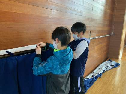 明日の入学式に向けて準備をしました。 6年生としての初仕事です。