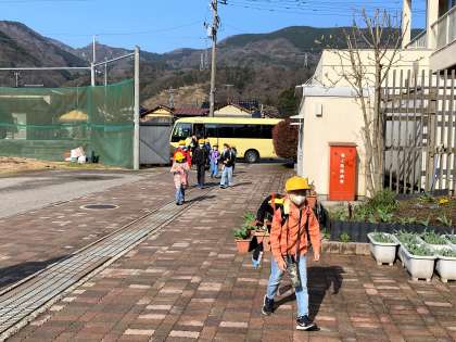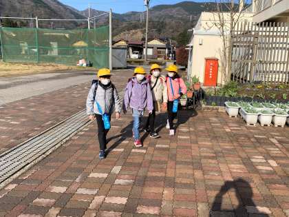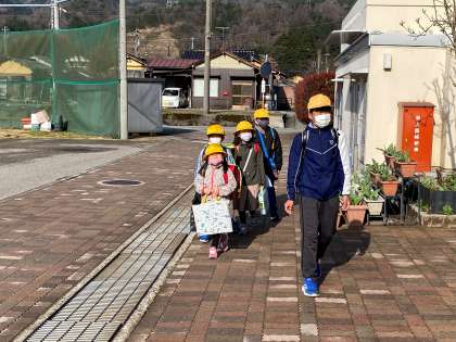 今日から新1年生が2年生から6年生のお兄さんお姉さんと一緒に登校しました。
