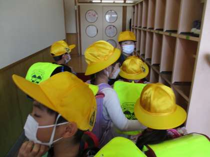 登校してからの流れをみんなで練習しました。
