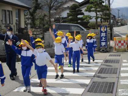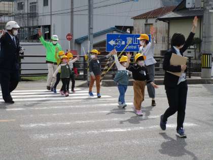 横断歩道では、手を挙げ、左右の安全を確認しながら横断することができました。今日教えていただいた「止まる」「目で見る」「耳で聞く」をしっかり守って登下校しましょう。