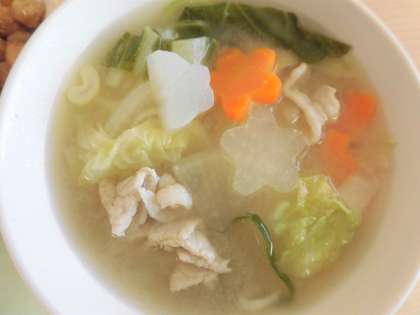 ひよこ豆は、デンプン粉をつけてカリッと揚げてあるので歯ごたえもよく風味もよいです。豚汁はにんじんやこんにゃく、じゃがいもがたくさん入っていて、食べ応えがありました。