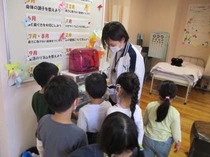 本の借り方や、部屋の中にあるものを教えてもらいました。