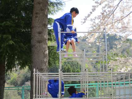 4月12日(火)1年生 グラウンドで遊ぼう 公開日 2022/04/12 更新日 2022/04/12 1年生の部屋 体操服に初めて着替えて、グラウンドに行きました。 鉄棒やブランコなどの遊具で仲良く遊びました。