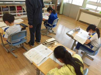 同じ教室内で3・4年生が学習をするという新しい試みに挑戦しています。