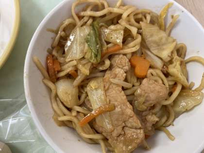 給食に出る焼きそばは昔から変わらない懐かしい味です。キャベツやにんじん、もやしがたっぷり入っています。豚肉も肉厚で食べ応えがありました。