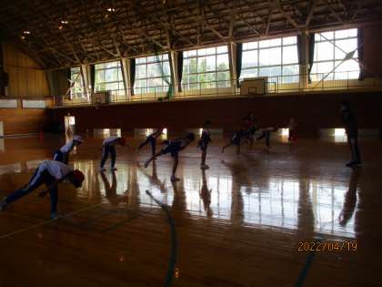 4月19日(火)3・4年生 今年度の体育は?! 公開日 2022/04/19 更新日 2022/04/19 3年生の部屋 今年度は、中学校の体育の先生とも一緒に学習することになりました。嬉しそうな表情で、体幹を鍛える動きをしています。