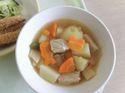今日の献立は、ごはんきびなごのさくさく揚げ、あわせ和え、豚肉とじゃがいものうま煮、牛乳です。