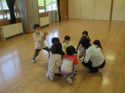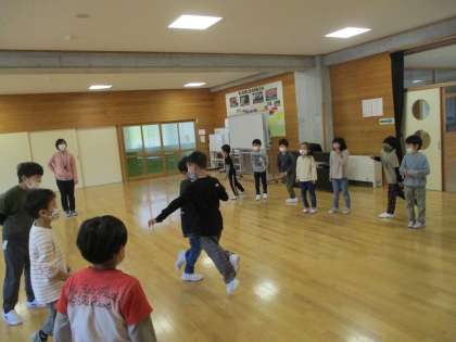 朝のコミュニケーションタイムに2年生の子供が中心となって、1年生と「はないちもんめ」をしました。楽しく、生き生きと活動しました。