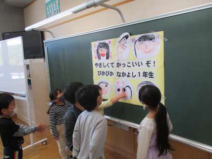 5月2日(月)1年生 学級目標 公開日 2022/05/02 更新日 2022/05/02 1年生の部屋 1年生の学級目標が決まり、自分たちの似顔絵を貼りました。 自分や友達の絵を見ながら笑顔で話しています。楽しそうです。