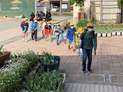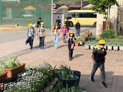 青空が広がっています。風が強いようです。 半そでで登校してくる子供がたくさんみられました。