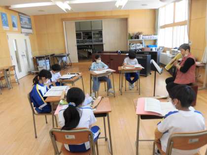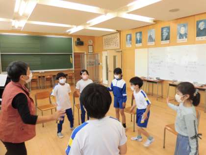 「いいことありそう」の合唱をしていました。二部合唱の歌声も素晴らしいですが、ノリノリのダンスもすてきでした。
