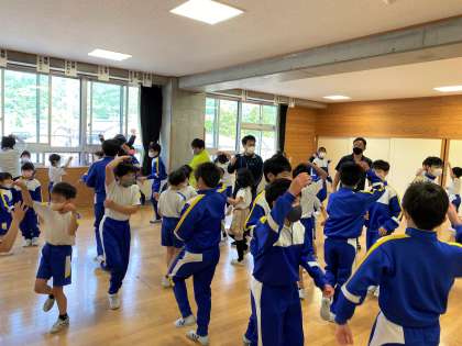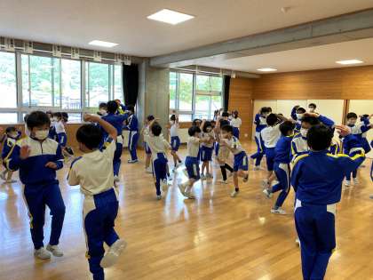 今年の「はじめの歌」や「終わりの歌」「遊びの歌」などの練習をしました。3年生や4年生が見本を見せてくれました。
