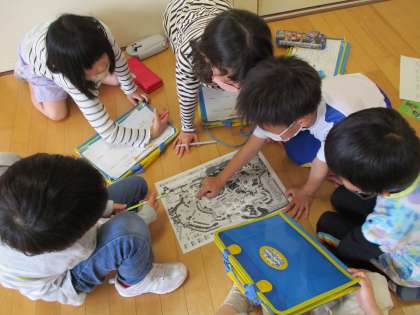 班ごとに地図を見ながらクイズにしたい動物を決めました。