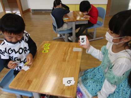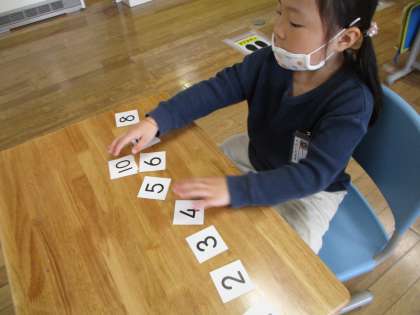 順番に並べたり、大きい数ゲームをしたりしながら学んでいます。