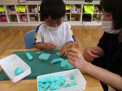 いろいろな道具を使いながら、お寿司やラーメンなど美味しそうな食べ物をたくさん作りました。