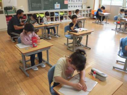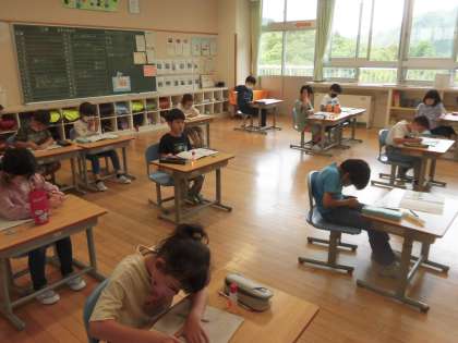 今日は、引き算の答えがあっているか確かめる「たしかめ算」の学習をしていました。どんな式を立てればよいか考えて計算していました。