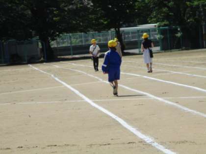 算数の学習で、10mはどこからどのくらいまでの長さなのかを予想してみると、何と全員が10mを超えていました。10mは意外と短いと感じた3年生、次はストップウォッチを片手に、グランドの100mコースを5往復して、1kmを体感。人によってかかった時間も歩数も違ったことに新鮮な感動を覚えていました。
