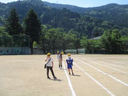 算数の学習で、10mはどこからどのくらいまでの長さなのかを予想してみると、何と全員が10mを超えていました。10mは意外と短いと感じた3年生、次はストップウォッチを片手に、グランドの100mコースを5往復して、1kmを体感。人によってかかった時間も歩数も違ったことに新鮮な感動を覚えていました。