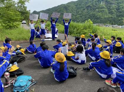 6月1日(水) グリーンアドベンチャー 公開日 2022/06/01 更新日 2022/06/01 学校行事 畠山重忠のお墓の近くに着きました。道中は6年生が総合で学んでいる重忠にまつわるクイズをしています。 碧っ子のみんなが安全に活動できるよう、駐在所の方が見守りをしてくださっています。