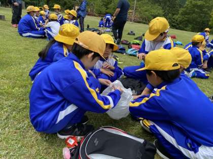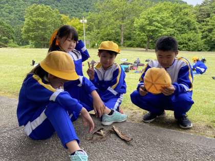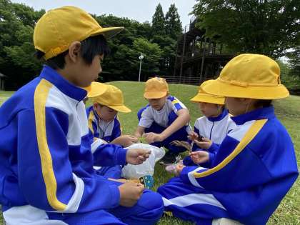 6年生が拾ってきた葉っぱや木の実などを探しに行くゲームです。
