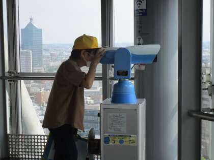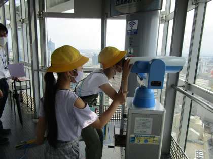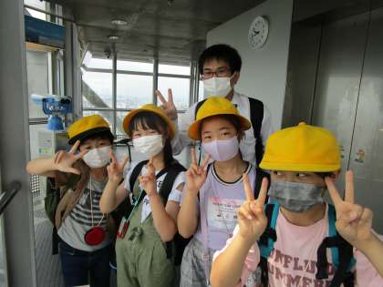 今日は3年生の校外学習でした。まずは富山市役所展望台で富山市の様子を見ました。「高い建物が多いな」「あのお城は何だろう」と、いろいろなことに気付きました。