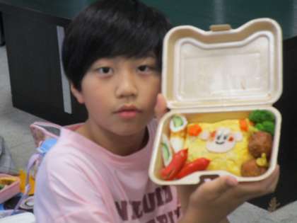 天気が少し悪くなってきたので、今回は室内でお弁当をいただきました。色とりどりなお弁当をおいしそうに食べていました。