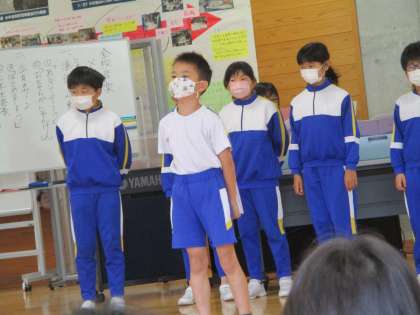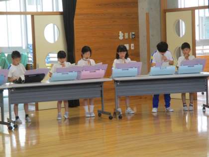 全校音楽を行いました。2年生は「カエルの大合奏」を全校の前で発表しました。「アンパンマンマーチ」も元気よく歌っていました。