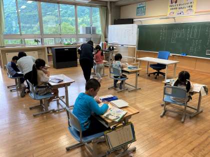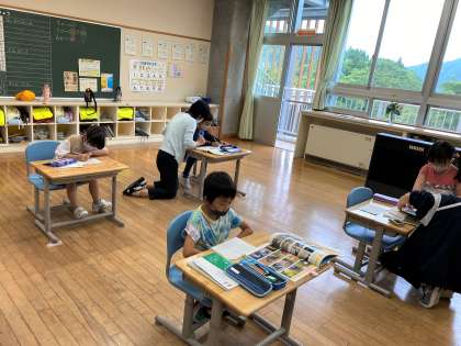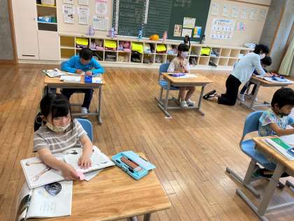 1年生は、説明文「くちばし」の学習の後、くちばしで習った問いと答えの組み立てに習ってクイズをつくっていました。できた人から出題の練習していました。