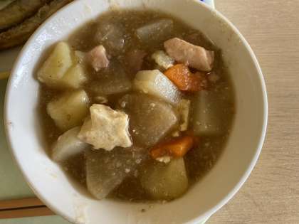 鶏肉とジャガイモのごま煮には、ごまがたくさん入っていて、香りが抜群でした。はりはり和えは甘酸っぱいたれが切り干し大根等の具材にしみこみ、歯ごたえもよかったです。