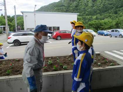碧っ子は、今「学校の歴史を探れ〜碧っ子探偵団〜」の学習もしているので、苗を植えながら、わくわく会員さんに話を聞いている子供たちもいました。