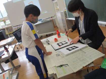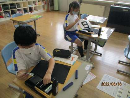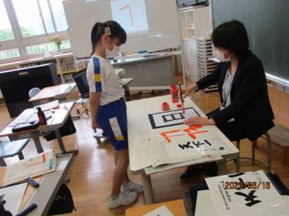 毛筆を始めて、3か月が経ちました。上手に文字を書くためのポイントに気を付けて練習を続ける3年生は、どんどん上達しています。片付けも丁寧にしています。